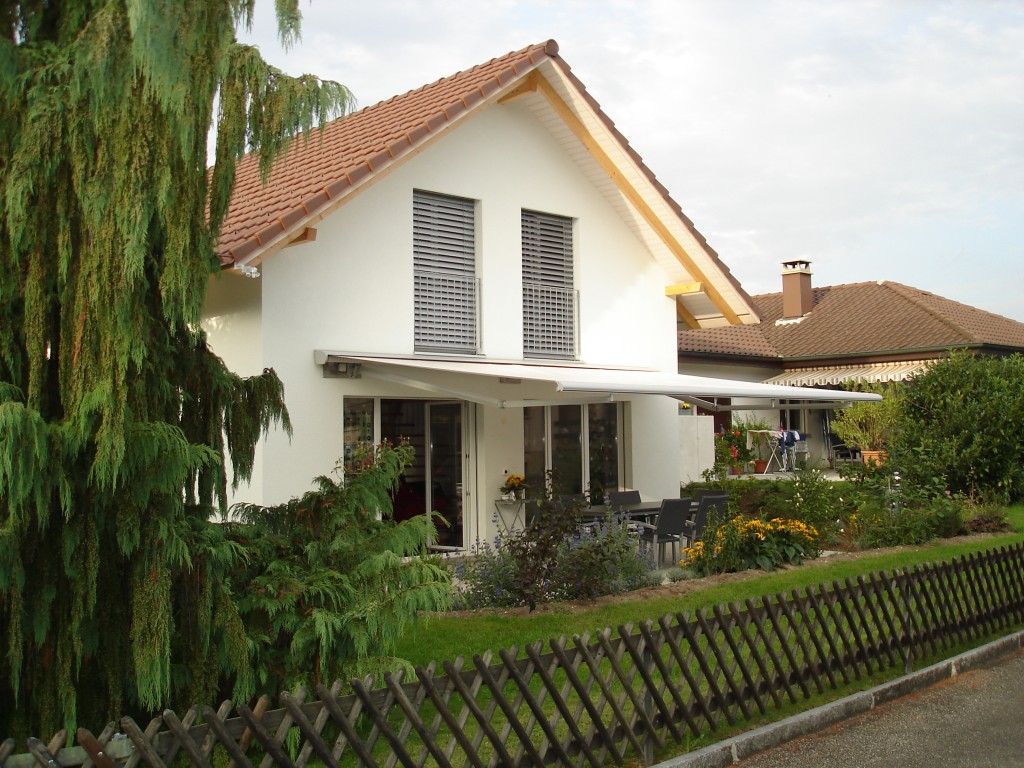 Neubau und Angliederung eines 4 ½ Zimmer Einfamilienhauses an bestehendes Wohnhaus mit gemeinsamer Luft-Wasser Wärmepumpe Heizung. Verbindungsbau wird als Carport und gedeckten Eingang genutzt. Baujahr: 2008